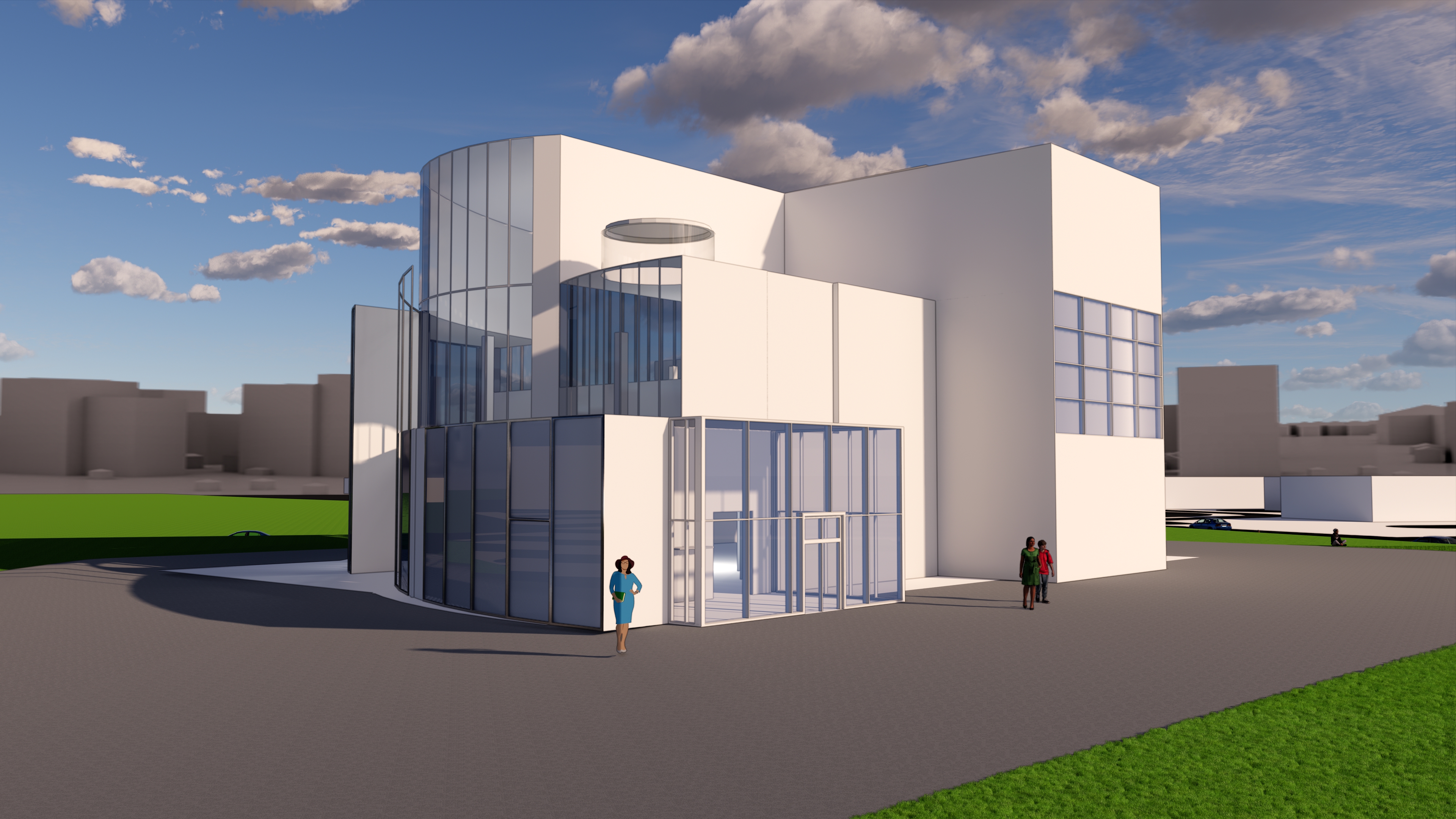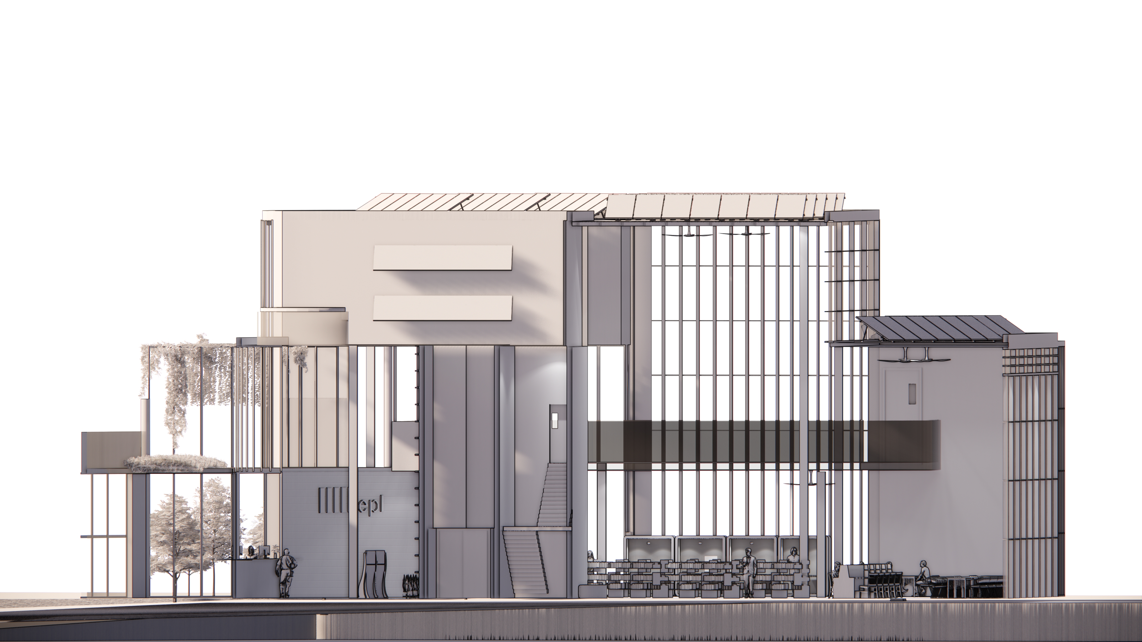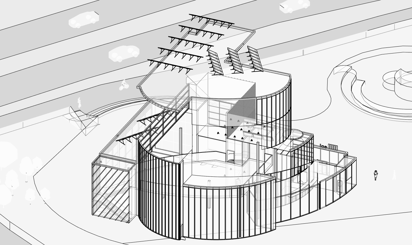 This project features a standalone commercial building, fully developed using BIM software Revit and rendered with