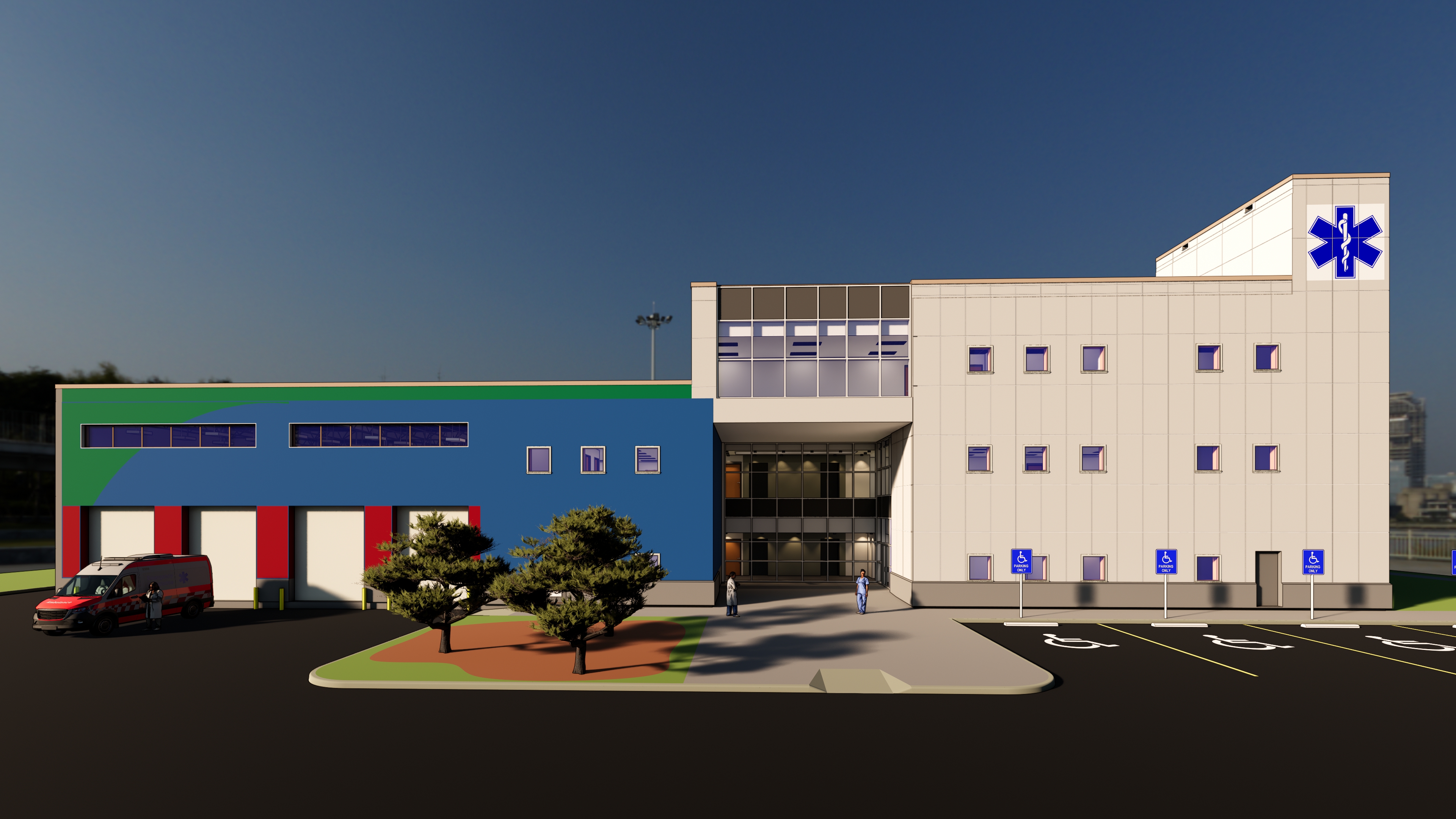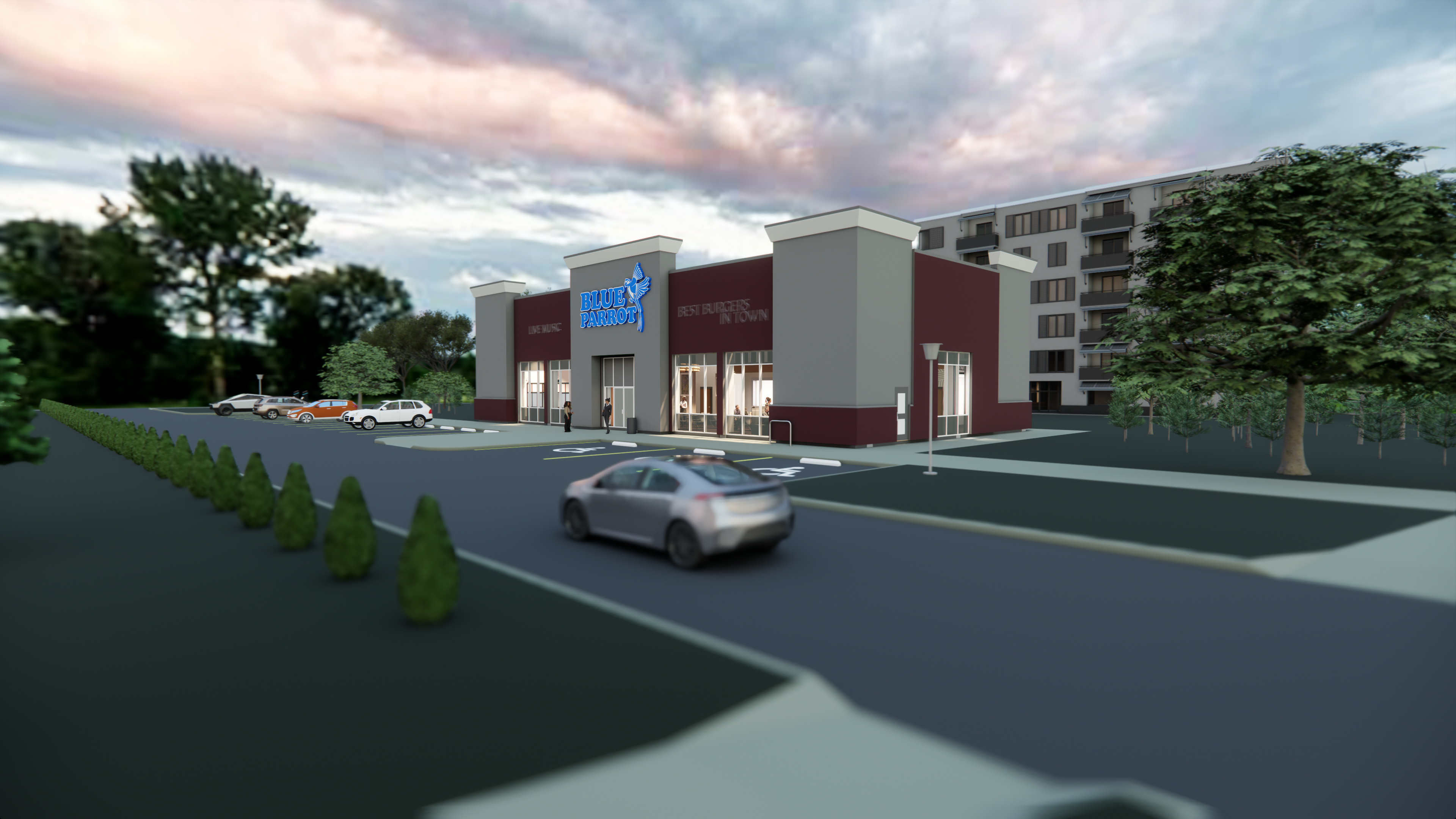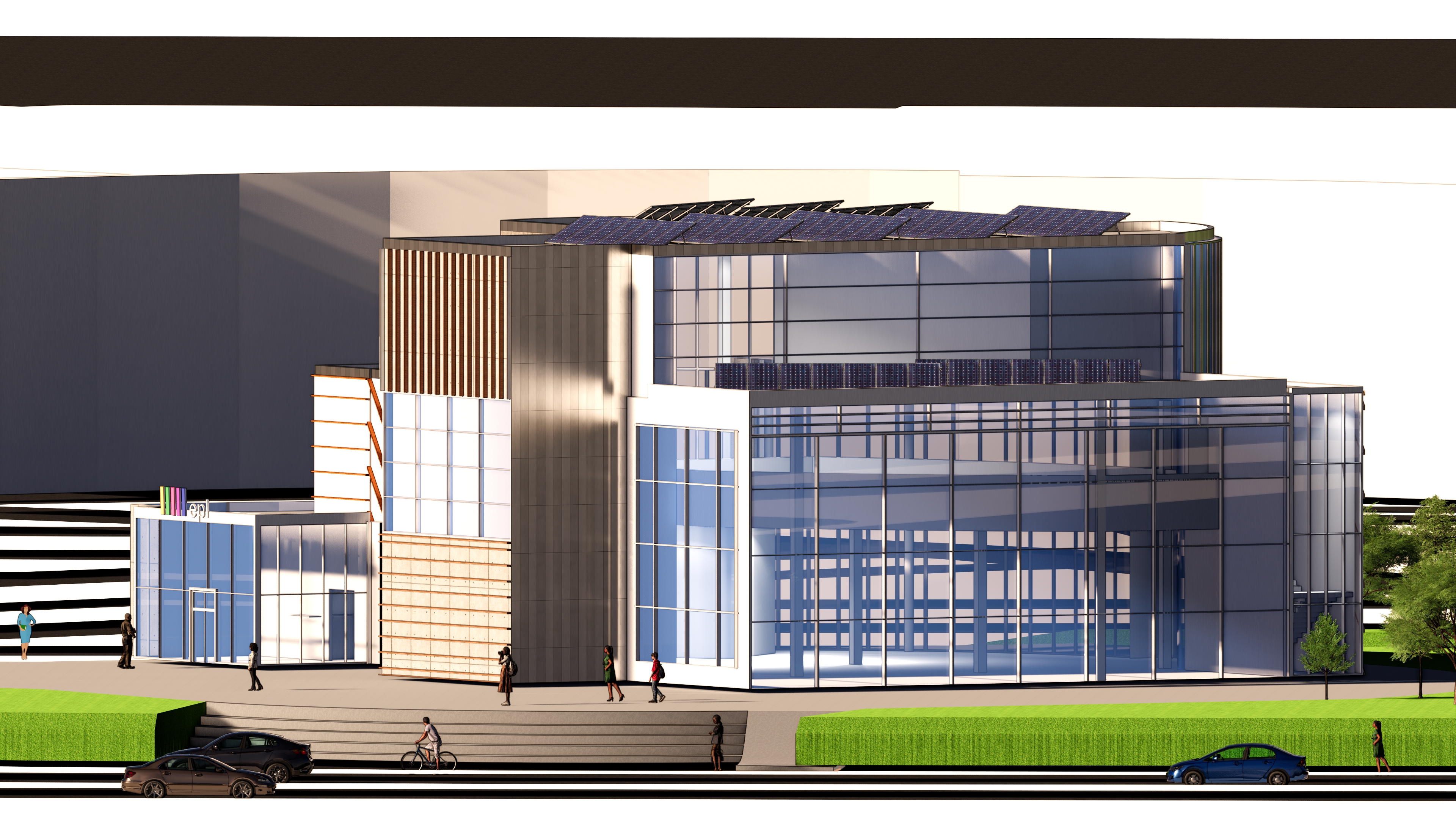 This project features a standalone commercial building, fully developed using BIM software Revit and rendered with