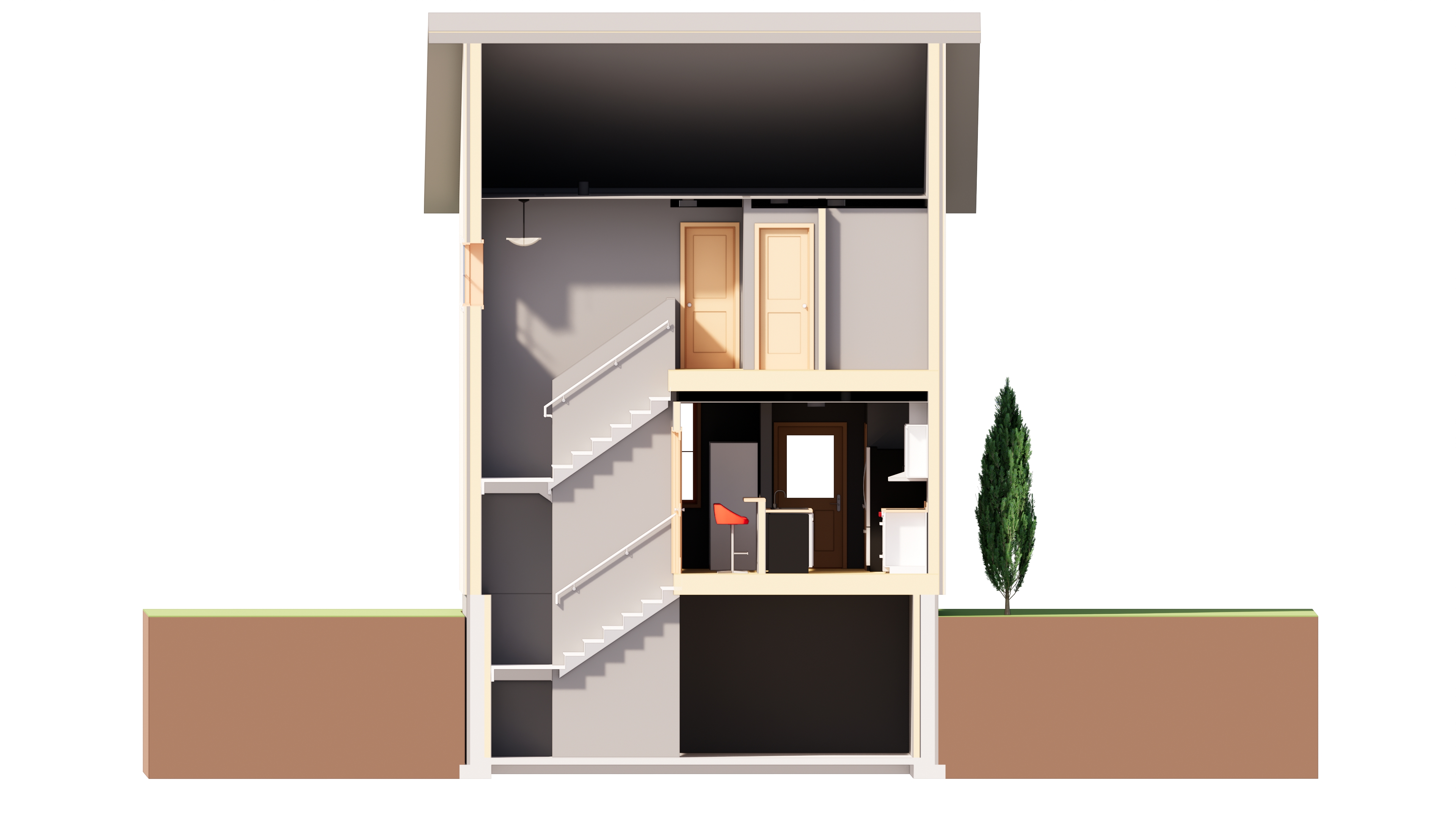 This project features a design for two independent residential units, developed using BIM software Revit to enhance the detailing and refinement of