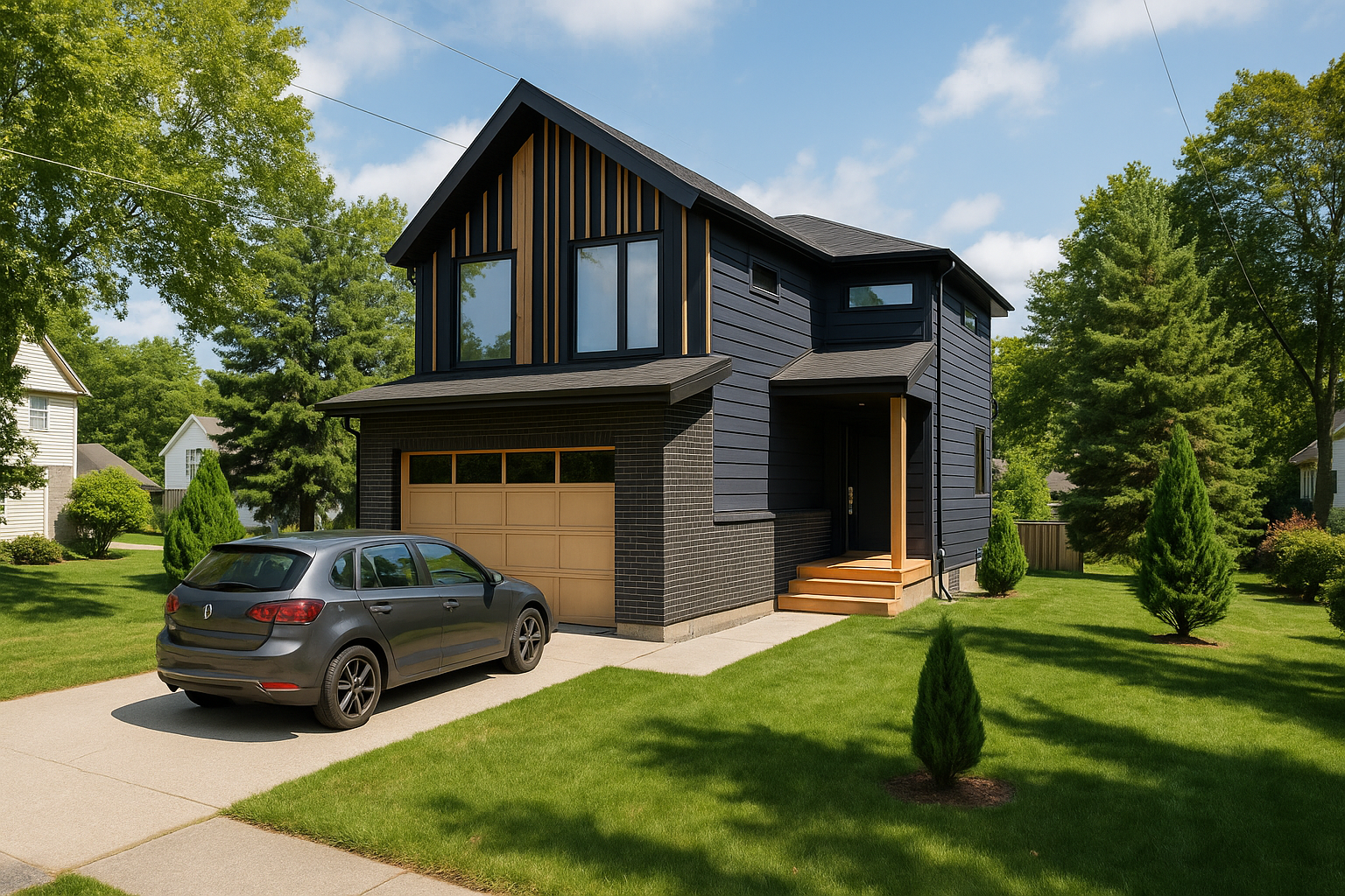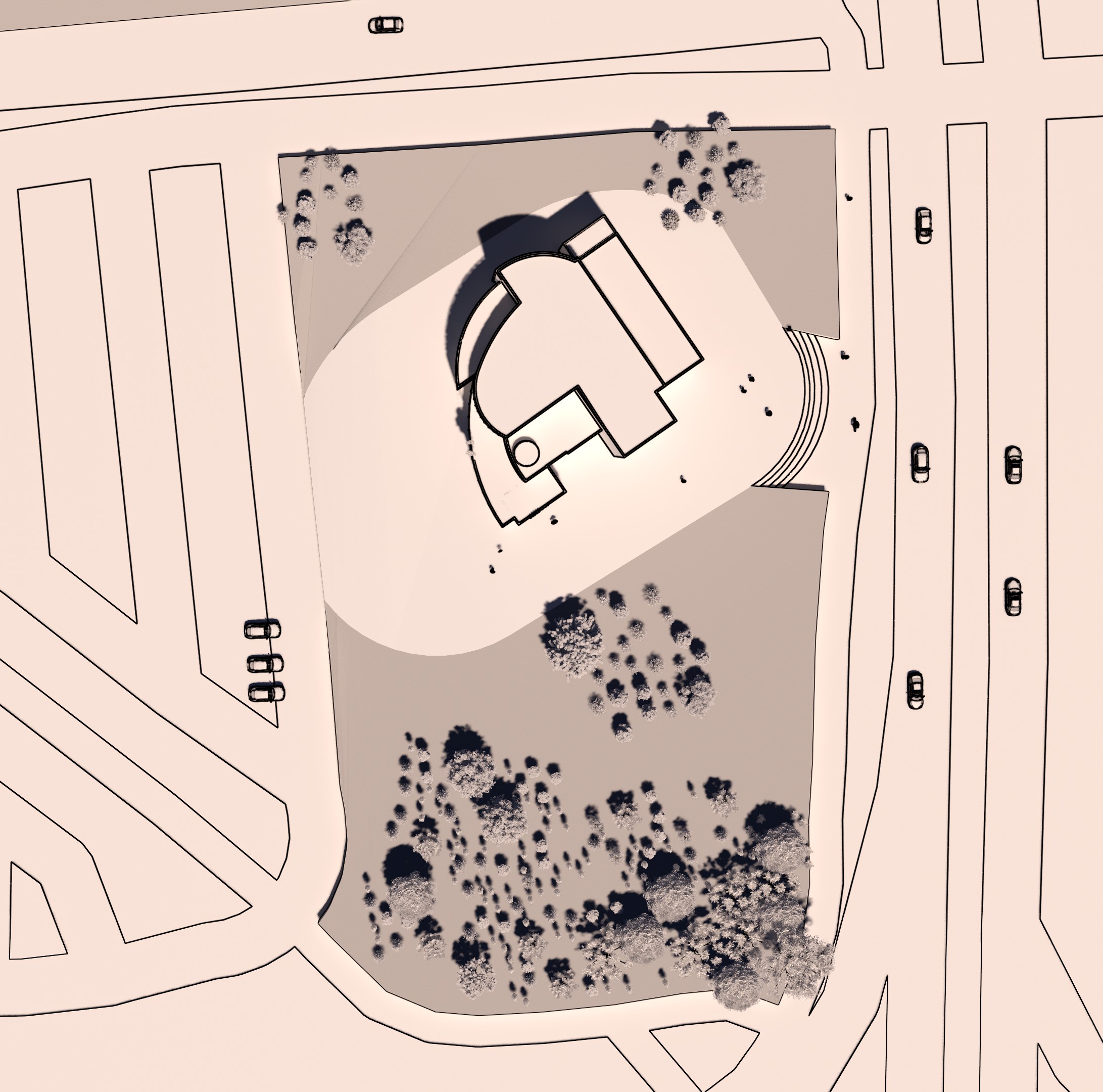 The site contained several mature trees, and rather than removing them, the layout was shaped to embrace and preserve them.