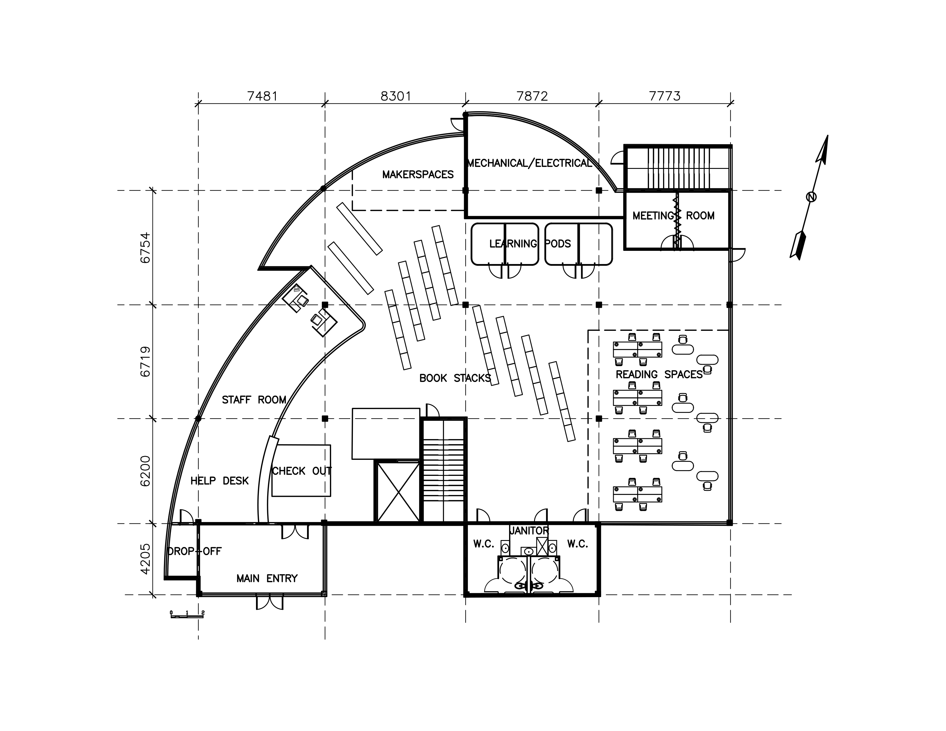 This project focuses on the design of a public library, emphasizing the learning of zoning different areas and